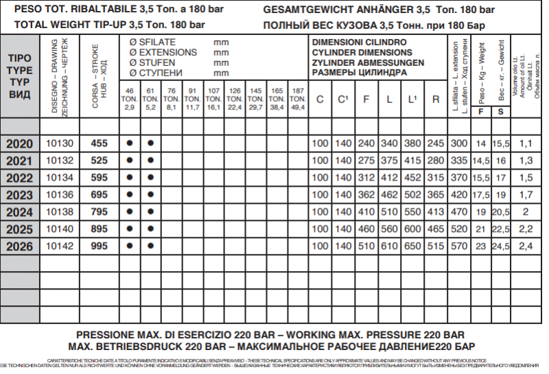 Total Weight Tip-up 3.5T – 180 Bar