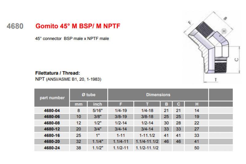 / 4680 45 Degrees Elbow Connector M BSP x M NPTF