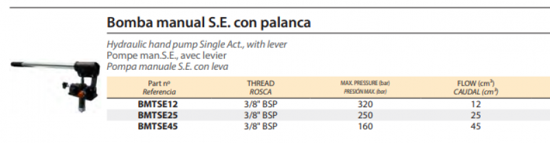/ Hydraulic hand pump Single Act., with lever