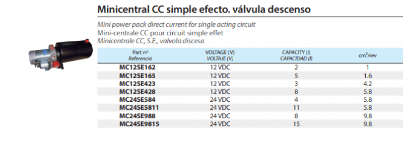 Mini Power Pack direct current for single acting circuit