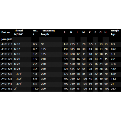 Design: Jaw – Jaw, closed body with stop nut Surface Treatment: Hot dip galvanized Safety Factor: 5:1